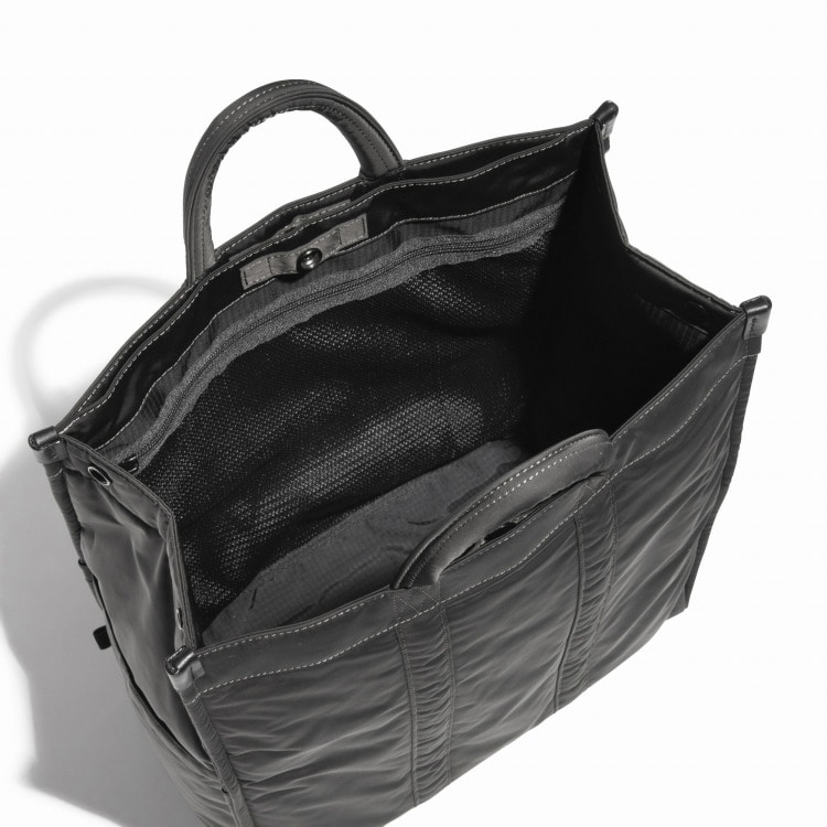 敢えてショルダーストラップは設けず、手に提げたときのバランスが最適に感じられるようなサイズ感に拘りました。