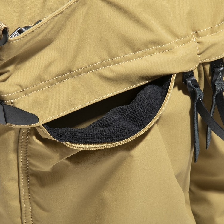アウトドアウェアやマウンテンパーカーに使用される3層構造の高機能生地をピックアップし、都市生活に適した形でアップデート。