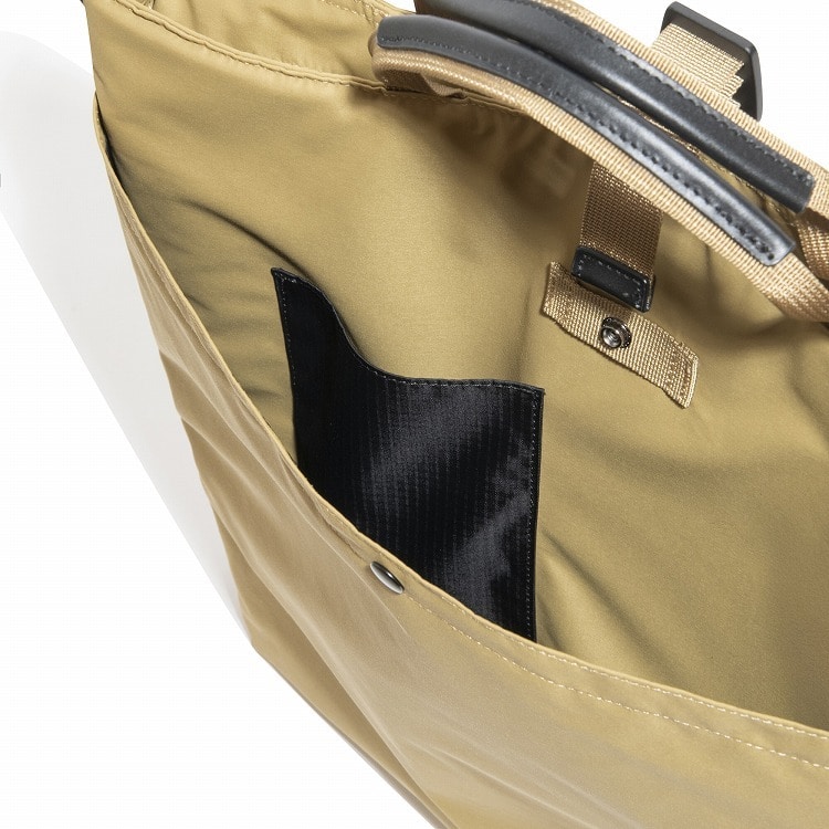ハンドル部周辺ににファスナーの付かないユーティリティポケットを設け、スマホやパスケースなど出し入れが頻繁に行われる小物類を収納しやすいように工夫しました。
