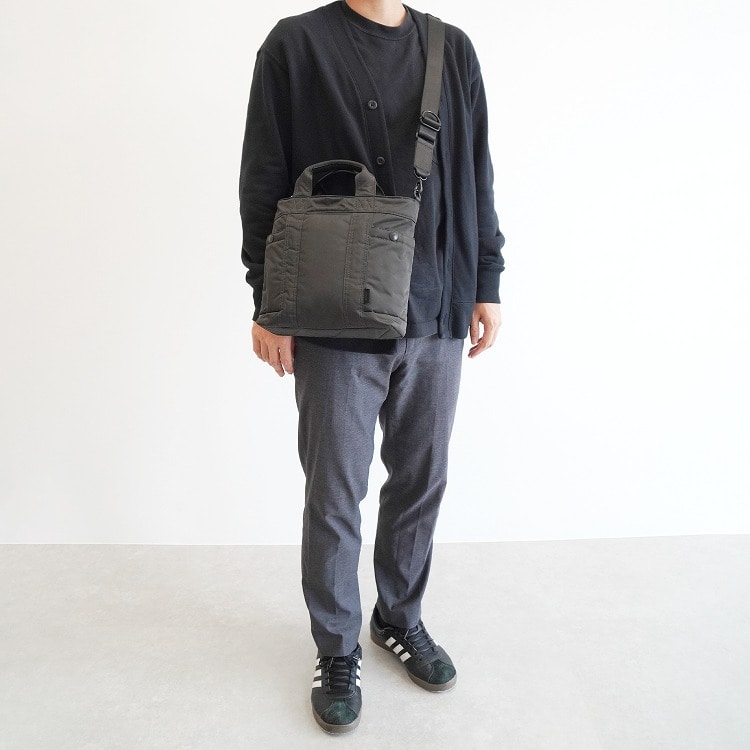 シックなデザインに軽いポリエステルボンディング素材を採用し、キャンプなどのアウトドアにもCITYにも溶け込むシーンレスなバッグシリーズです。
