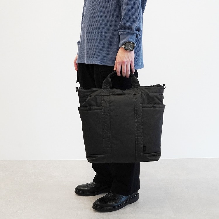 シックなデザインに軽いポリエステルボンディング素材を採用し、キャンプなどのアウトドアにもCITYにも溶け込むシーンレスなバッグシリーズです。