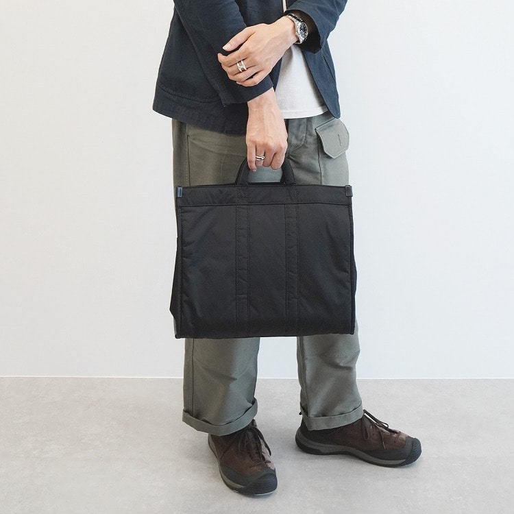 シーンレスに使えるトートバッグ。PC収納ポケットやA4ファイル対応で、ON/OFF使えるアイテム