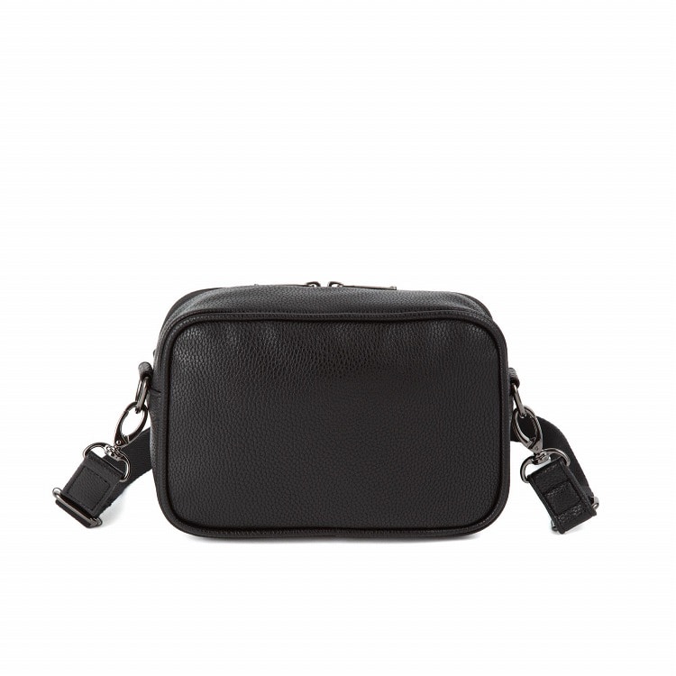 きれいめにもカジュアルにも合わせやすい合皮素材のショルダーバッグ。