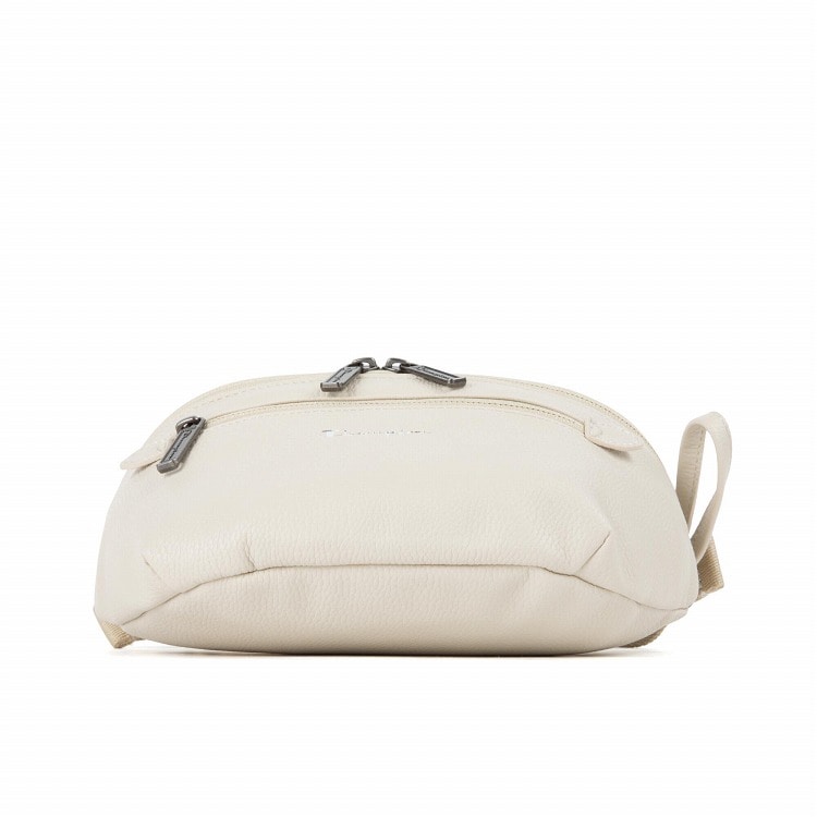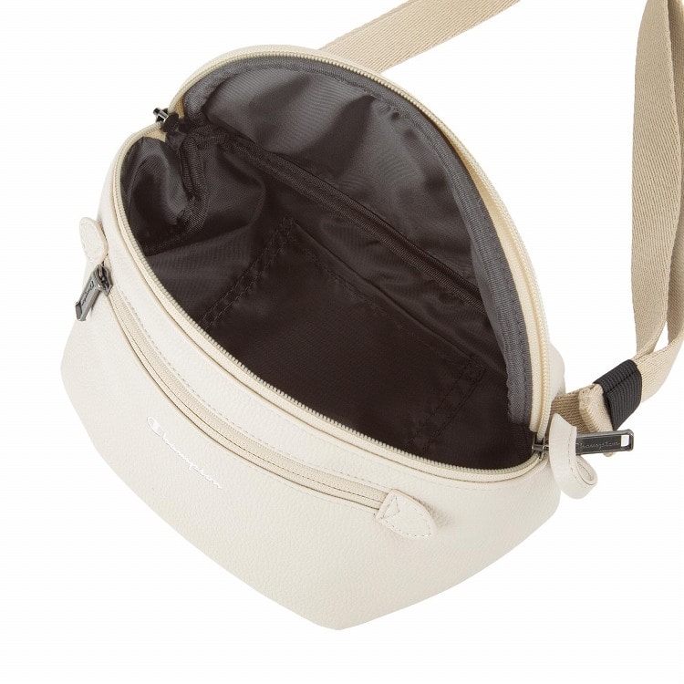 きれいめにもカジュアルにも合わせやすい合皮素材のボディバッグ。