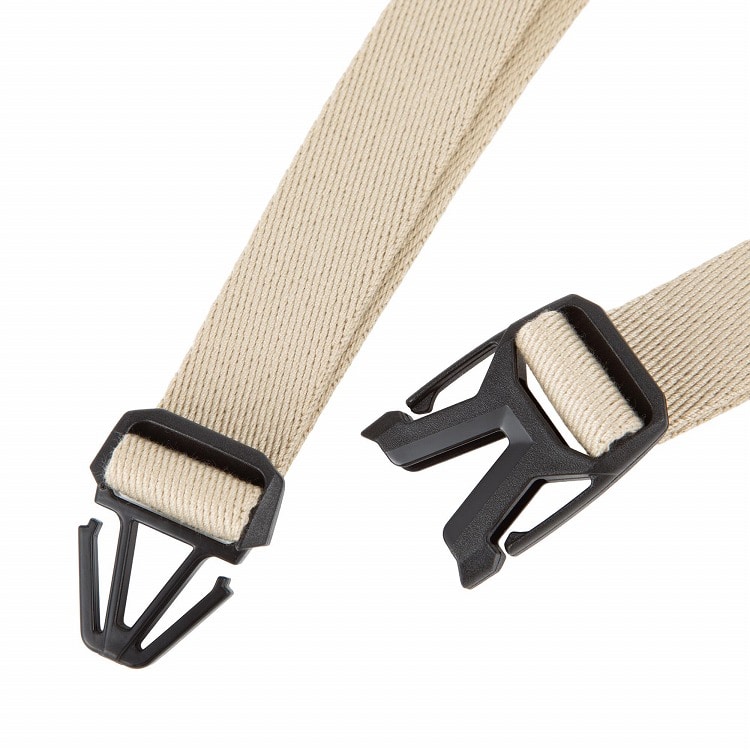 肩紐には取り外し可能なバックルが付いているので、着脱もスムーズです。