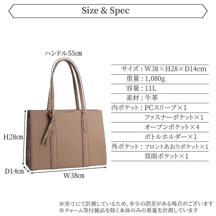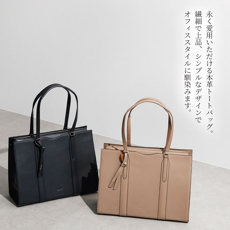 繊細で上品な印象の本革を使用したA4サイズトートバッグ。
