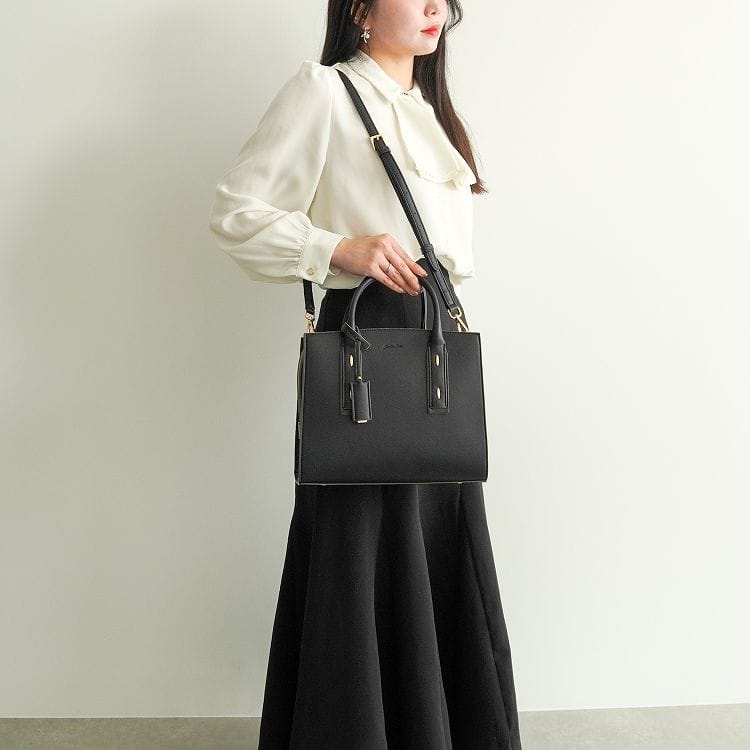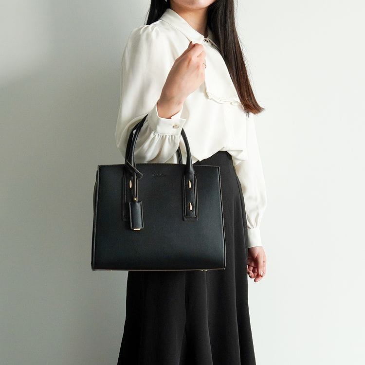 ハンドルの付け根にバーモチーフをあしらい、スタイリッシュなチャームが付属したシンプルなデザイン。