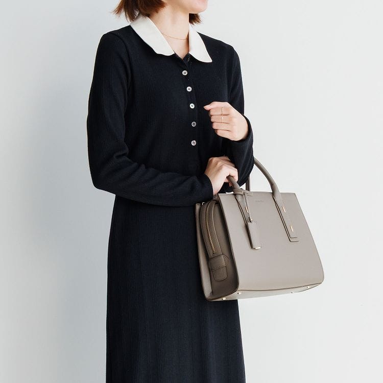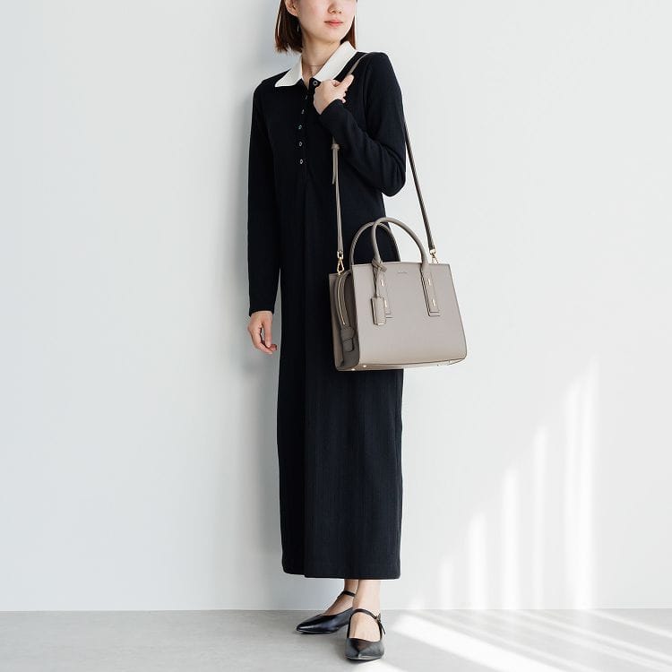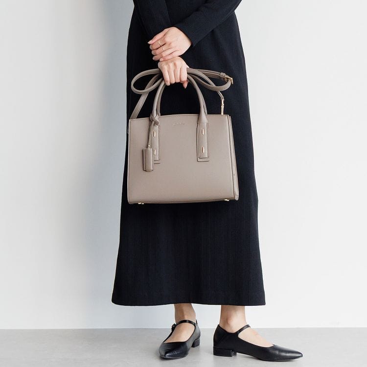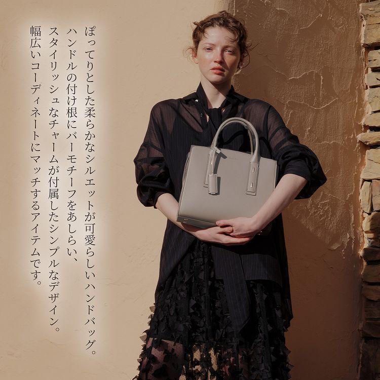 ハンドルの付け根にバーモチーフをあしらい、スタイリッシュなチャームが付属したシンプルなデザイン。
