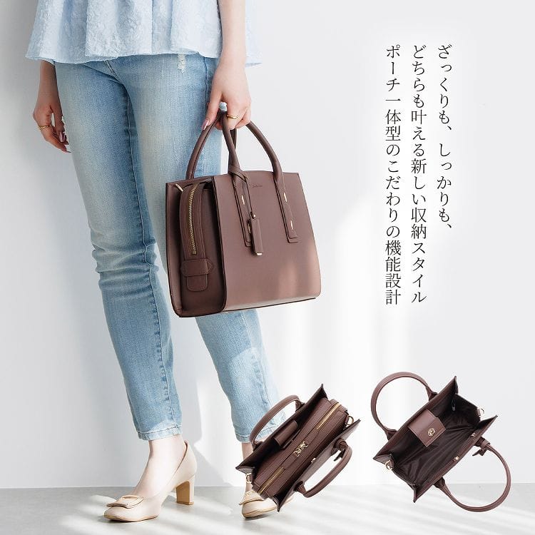 ショルダーベルトが付いているのでショルダバッグとしてもお使いいただけます。