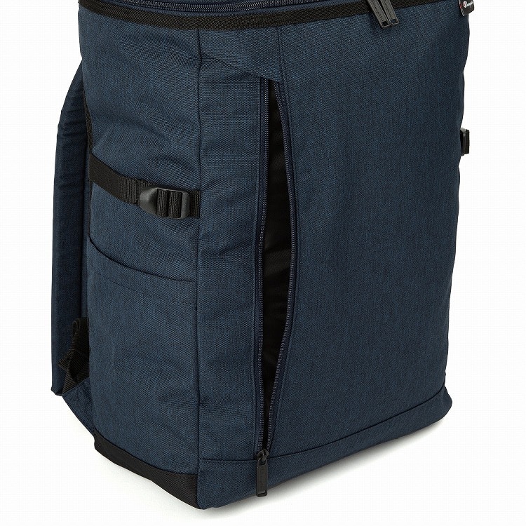 背面には背負ったままでもメイン収納部にアクセス可能なファスナーを配備。