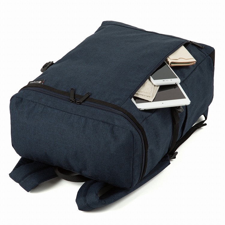 メイン収納部には小物を収納できるユーティリティポケットを配備。鍵やスマートフォン、財布などをしっかり仕分けて収納できます。