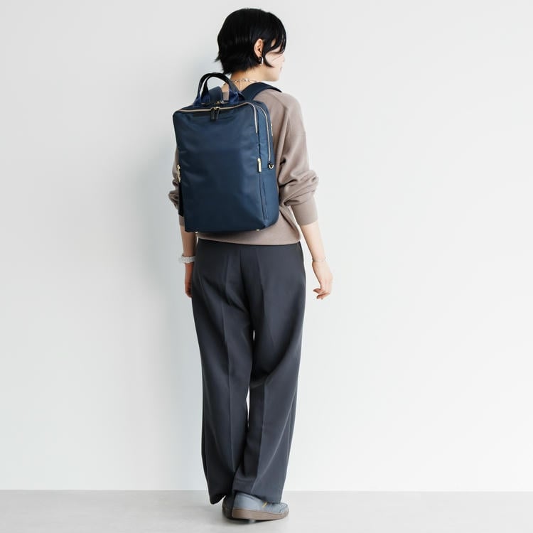 電車内などで前持ちした際も邪魔になりにくい、スリムでコンパクトなシルエットに仕上げました。