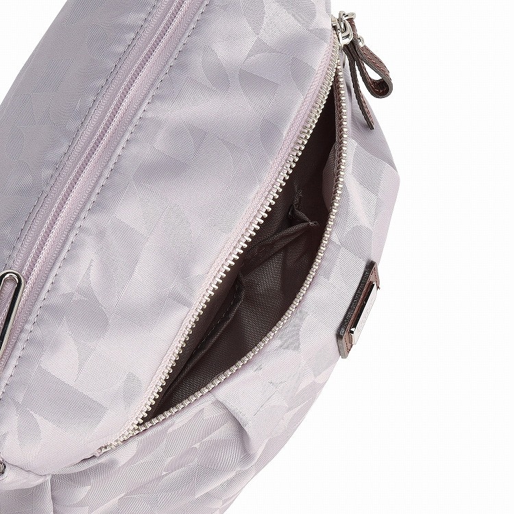 前ポケットのメタルファスナーと揺れるチャームが、とてもエレガントです。