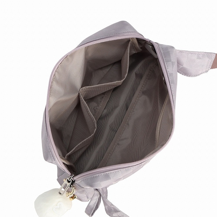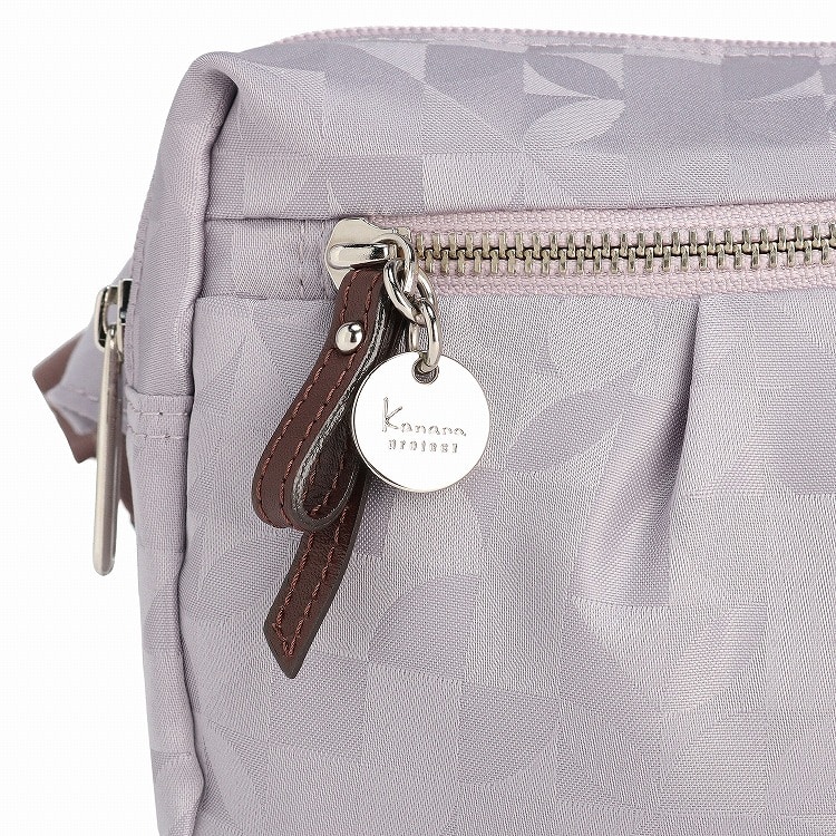 前ポケットのメタルファスナーと揺れるチャームが、とてもエレガントです。