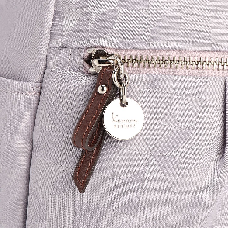 前ポケットのメタルファスナーと揺れるチャームが、とてもエレガントです。