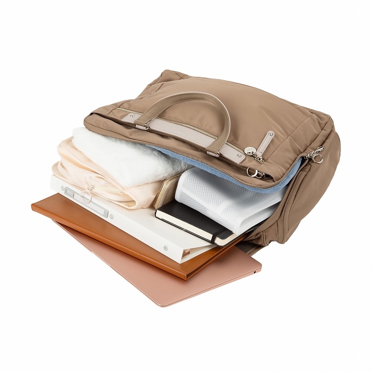 書類やPC、ポーチやペットボトル等、必要な荷物をしっかり収納可能。