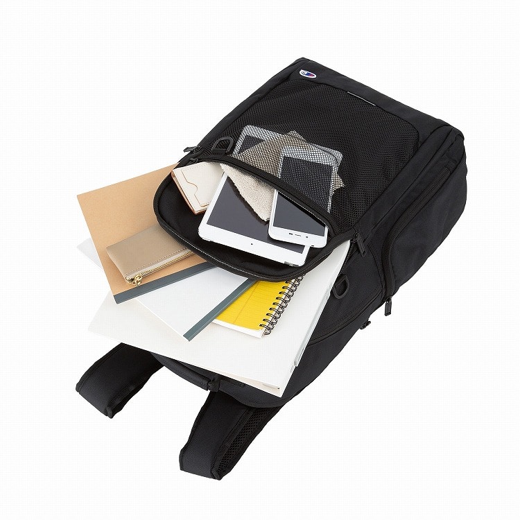 Championらしいスポーティなアクセントとして、機能的なメッシュポケットをデザインしたラウンド型リュックです。
