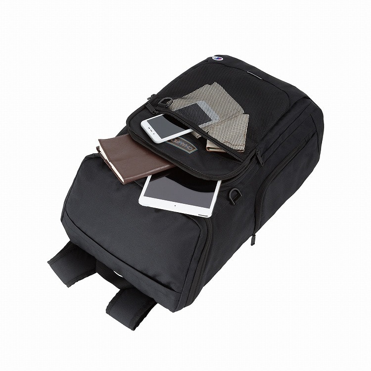 Championらしいスポーティなアクセントとして、機能的なメッシュポケットをデザインしたボックス型リュックです。