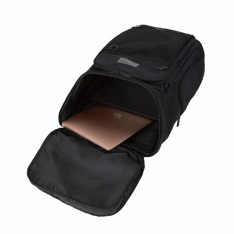 PC、タブレット、ファイル等収納可能な仕切りポケット付き。