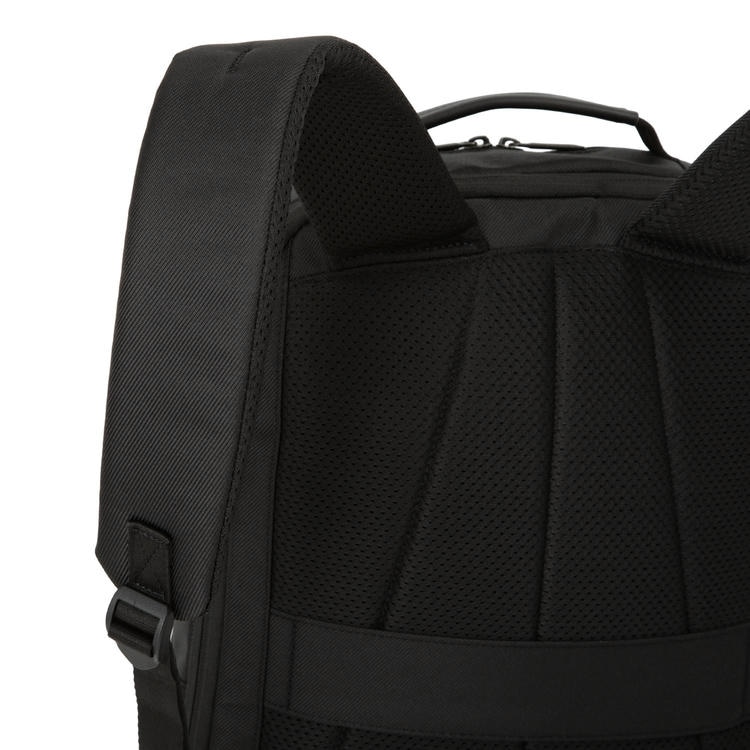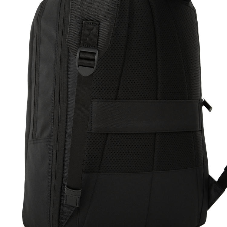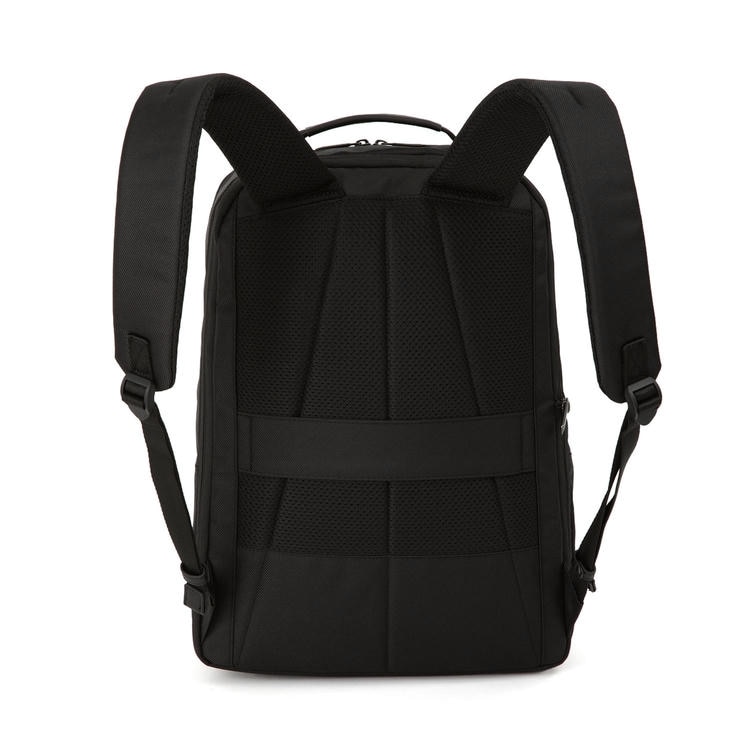背面やショルダー部分は通気性の良いメッシュ素材を使用。 背面下部は本体生地を使用しているため、洋服との擦れを軽減できます。