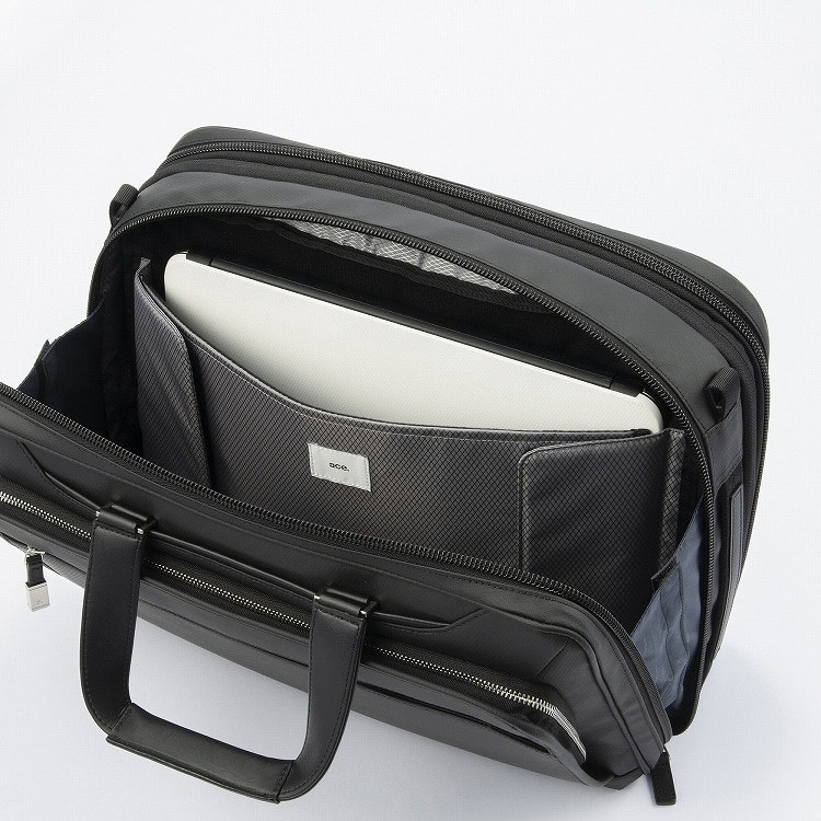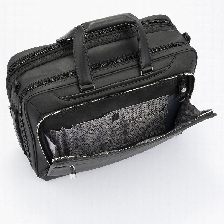 - 2気室/B4ファイル収納/PC収納(15.6inch)/ショルダーベルト/セットアップ機能/エキスパンダブル(マチ拡張)機能/ステンレスファスナー/高耐久PUコーティング