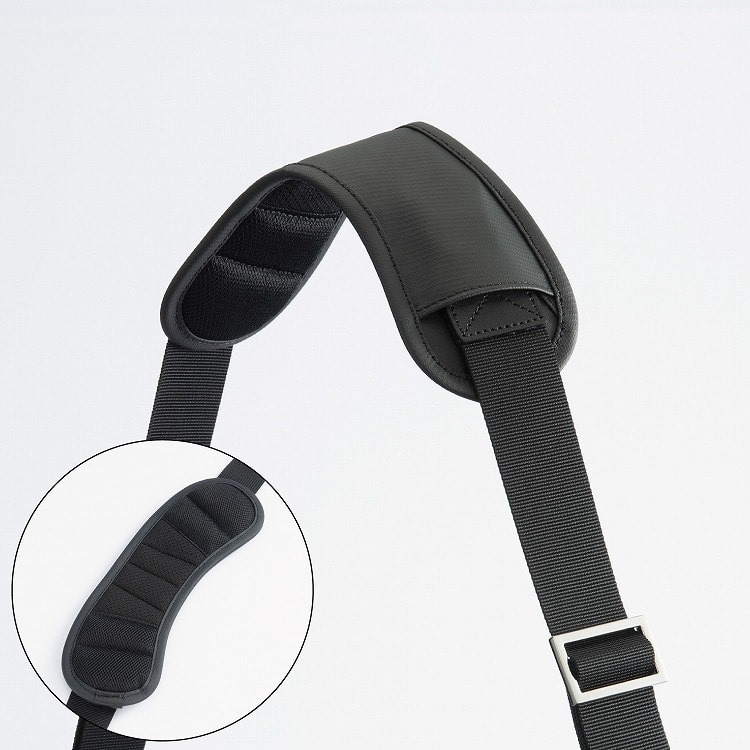 肩への圧迫を抑制しつつ着脱が容易な設計です。