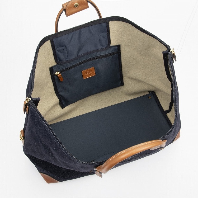 ハンドルはレザー製、ファスナー式のサイドポケット付き。