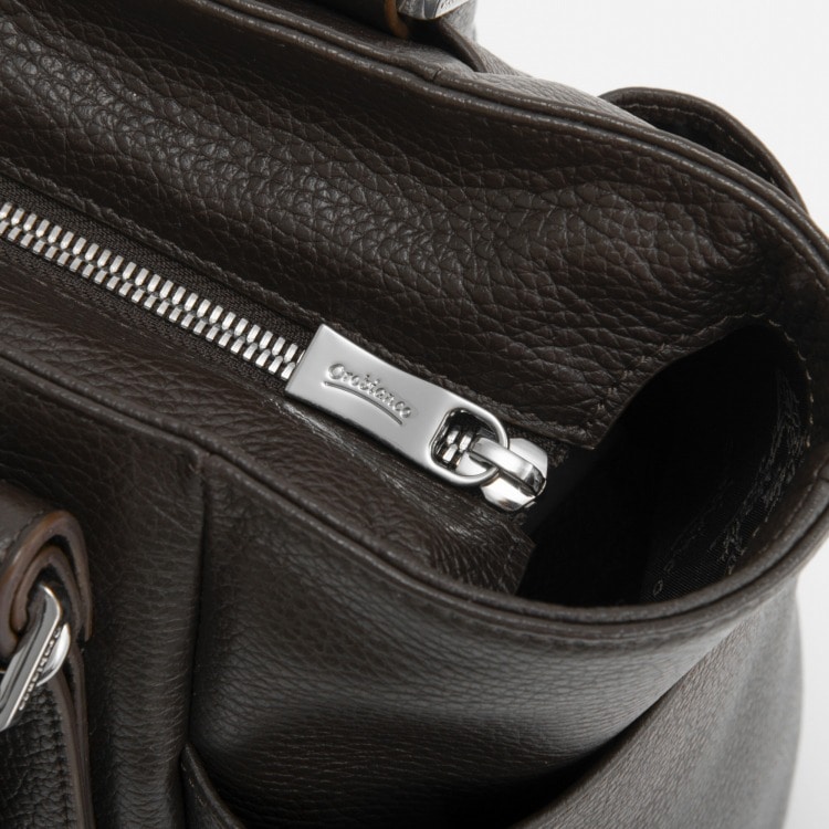 クロム鞣しで仕上げた柔軟性のある牛革を使用。上品な型押しとしなやかなタッチ感が味わえるソフトシュリンクレザー。