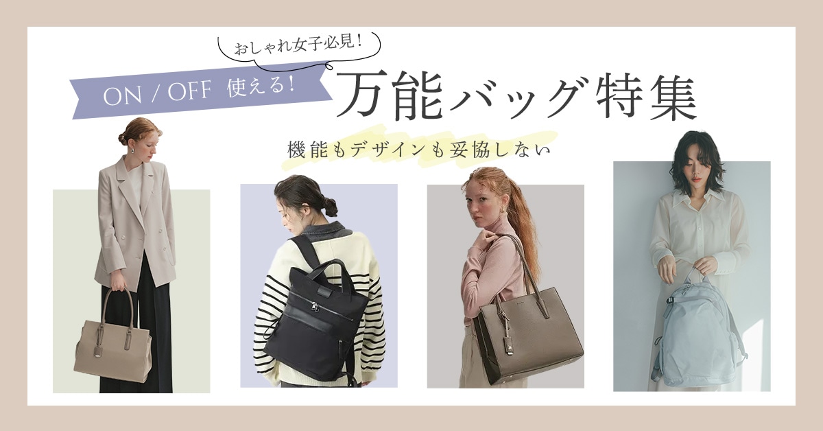 忙しい毎日を支える、オンオフ使える万能バッグ特集。通勤もおでかけもおしゃれにキマる、機能性バッチリなラインナップ。