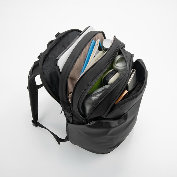 29Lリュック内の荷物整理に特化した構造で、用途に併せて使用できる5収納構造スペースが特徴。必要なものをすぐに取り出せる利便性と、ビジカジに馴染む洗練されたデザインを両立しました。